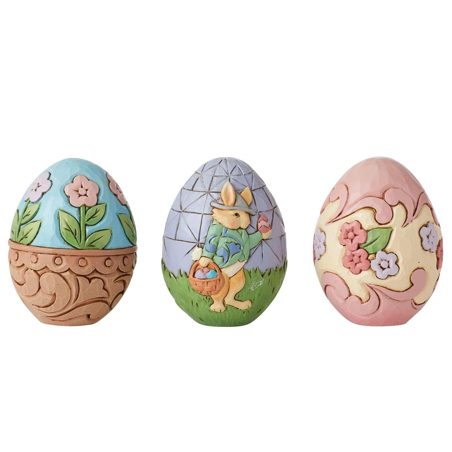 - Jim Shore Heartwood Creek “On the Hunt for Easter Surprises” Basket Figurine With 3 Eggs Set of 4