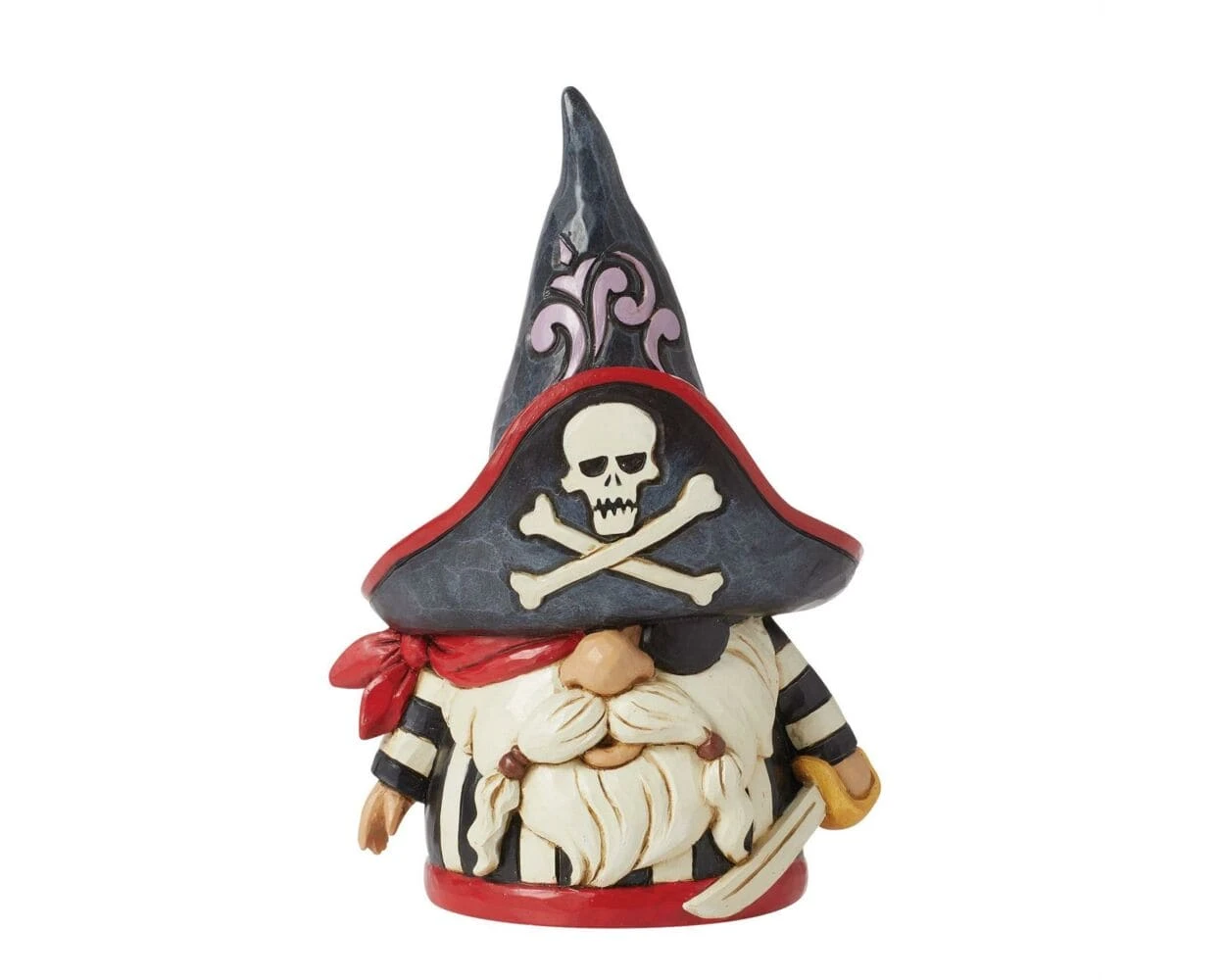 With a skull and crossbones hat, eyepatch, and swashbuckling sword, this gnome knows only the sea. Beard braided with beads he wears a red bandana. This first mate will shiver your timbers with maritime wonderment.