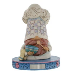No one knows gnomes quite like Jim Shore. This culinary inspired gnome is the newest addition in the ever expanding collection of guardians. Wearing a patchwork chef’s hat, this bearded chef tastes his latest creation with a spoon.