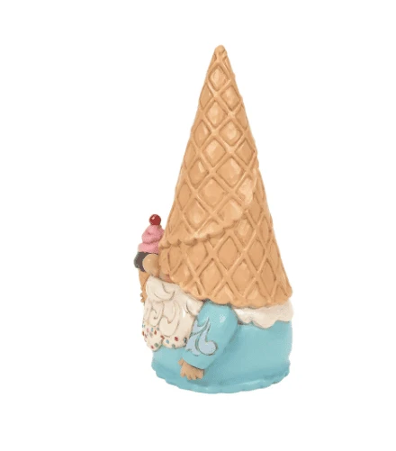No one knows gnomes like Jim Shore! A master craftsman of the playful guardians, the beloved artist creates a new addition to his growing gnome collection. This ice cream gnome eats an ice cream cone and sports a sprinkle beard and waffle hat.