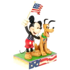 What is more American than a man and his dog? In this case, that man is a mouse, Mickey and he wears a wide smile as he waves the red, white, and blue flag proudly. Jim Shore celebrates patriotism with Disney’s favorite duo, both born in the USA.