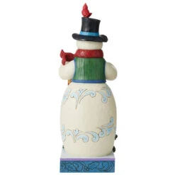 Holding a two-sided sign with heartfelt messages, this charming Snowman statue welcomes guests to your home through the holidays and beyond. Beautifully hand-crafted in intricate detail, this is a delightful wintry design. Display inside or in a protected outdoor space.