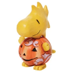 Somewhere in the pumpkin patch, Linus and Charlie hunt for the great pumpkin. Meanwhile, Woodstock, the beloved Peanuts’ bird, disguises himself as a jack-o’-lantern this Halloween. With a delighted smile he showcases Jim Shore rosemaled details. Every Jim Shore piece is beautifully hand-painted and crafted from high-quality stone resin with intricate styling and attention to detail making every piece unique.