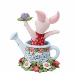 Piglet delightfully cheers from inside a watering can in this Jim Shore design. Featuring the artist’s iconic patchwork and rosemaling, the piece is surrounded with colorful flowers as Piglet presents one picked just for you.