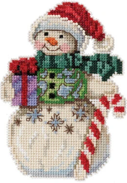 Snowman With Candy Cane – Beaded Cross Stitch Kit
