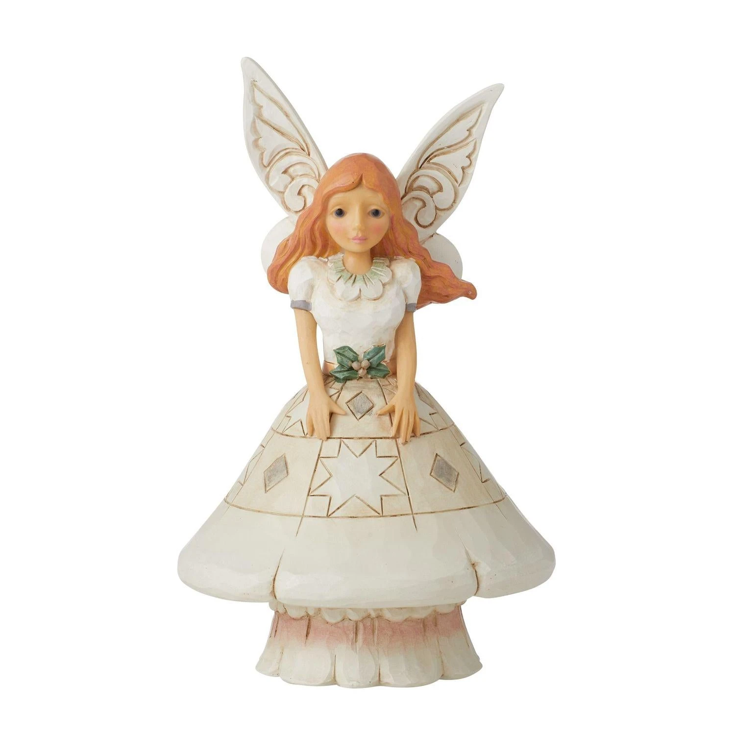 This woodland fairy knows good things grow from love and laughter. Smiling sweetly, she wears a mushroom capped gown detailed with classic Jim Shore patchwork. Belted with holly, she looks fantastic in her funky fungi fashion.