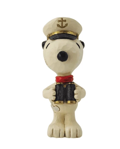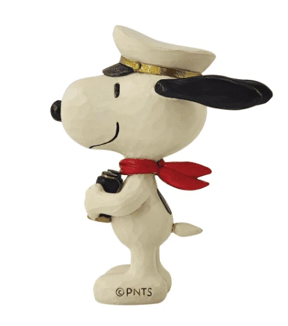 This miniature design by Jim Shore features the artist’s classic style matched with a beloved Peanuts character. With rosemale details, Snoopy wears a red sailor’s neckerchief and captain’s hat. Holding a pair of binoculars, he enjoys the sea air.